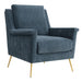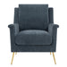 The Cambridge Accent Chair is living room goals! This mid-century style chair features gold legs, adding extra flair to this already stylish set. Not only is the cushion foam filled, but the oversized, deep seating will make this more than just a pretty chair you display; but one that you will also love to relax in. The straight arms are plush like, and feature a slight overhang. Sleek, clean lines and piping throughout make this chair a standout for years to come.