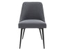The Colfax side chairs feature a mid-century modern look with canted, round tapered metal legs finished in black. Available in your choice of Blue, Stone, Gray and Charcoal fabric or Black Faux Leather.