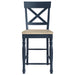 Add timeless charm to your space with the Darcy Solid Wood 24" Counter Chair, designed for 36-inch high counters. Its modified Napoleon X-back blends traditional elegance with modern versatility, while the two-tone finish combines deep midnight blue and a natural wood seat, showcasing warm, rustic-modern appeal. Turned front legs bring farmhouse charm, and clean lines keep the look fresh. Crafted for comfort and durability, the contoured seat invites relaxation, perfect for meals or gatherings. Ideal for dining rooms, kitchens, or breakfast nooks, it balances style and function beautifully.
