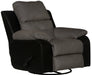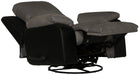 Felix a luxurious pub back and decorative two-tone faux leather and fabric treatment. The Reclining Sofa our exclusive Triple Recline feature and convenient Drop Down Table, with companion Rocking Loveseat and Swivel Glider Recliner items.