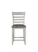 An upholstered Counter Chair that sports a stone gray finish and vegan rawhide seat to make a stylish and comfortable addition to any kitchen or dining area. The horizontal slatback design features a shaped top rail for a relaxed transitional appeal. Stretchers add structural support and a place to rest your feet when seated at the Hyland Counter Table or a Counter Bar.
