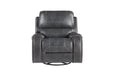 Superior comfort and style are the hallmarks of this motion set. Featuring a leather-like cover with baseball stitching, this ensemble comes with a Sofa with a drop-down console & USB charging station; a Loveseat with dual rocker/recliner ends; and a rocker/recliner Chair with 360-degree swivel. Antiqued brass nailhead trim and padded arms complete this ultimate motion package.