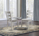 - Styling details include shaped ladderback design with rolled cap rail, upholstered seat and tapered legs