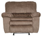 Style and comfort best describe the Reyes rocker recliner. Featuring heavy a duty mechanism this recliner is ready for years of exceptional comfort. The smooth operating recline is initiated by the ergonomically designed handle on the side and closing is easy with a downward push of your feet. The seating is constructed of a minimum of 50 individually pocketed coils encased in foam, topped with a layer of cool gel infused memory foam and a box bordered pillow top for maximum comfort and support. The back is filled with resilient plush polyester fiber to create a seating experience you won't want to leave. The Reyes recliner boasts stylish bold stitching details with a slight contrast to round out the look.