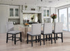 Clean modern living just got a lot easier with the contemporary styling and SilverShield® performance fabric Counter Chairs from the Yves collection. A rubbed charcoal finish combines with gold-colored accents on the Counter Chair to give a look both sleek and warm.
