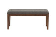 The perfect addition to your dining room, hallway, or bedroom, the Quinn Bench offers clean lines and a gray 100% polyester fabric with plush foam cushioning that ensures a comfortable seating experience for you and your guests. The warm chestnut finish over Asian hardwoods and oak veneers adds a touch of elegance to any space. Designed with versatility in mind, the Quinn Bench can be used in a variety of settings. Place it at the end of your bed for a cozy reading nook or in your hallway for a convenient spot to put on your shoes. Use it in your dining room as a stylish seating option that complements your decor. The gray chenille fabric is neutral enough to add to any room for a simple, elegant touch anywhere. With its sturdy construction and timeless design, the Quinn Bench is built for comfort, style and utility, but most important, it is built to last. Upgrade your space with this stylish and practical bench today.