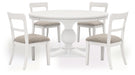 | Details | PCD824D10: Includes dining table top and base, Top made with hardwood solids, mango wood veneer and MDF substrate, Cast resin pedestal base, Antiqued white finish, Assembly required, PCD824-02: Made with sturdy solid wood frame, Antiqued white finish, Polyester upholstery, Foam cushioned seat, Includes adjustable levelers, Assembly required, | |