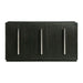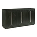 The Donovan Dining collection will be the key piece to your dining room. The server is a showstopper featuring its clean lines and dark finish. The piece features a generous amount of storage space on the shelves and beautiful cabinet doors with contrasting chrome hardware for a dramatic design. This is a effortless modern look for your dining room.
