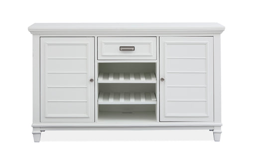 Liberty FurnitureNewport - ServerProduct Features Sliding Doors Inset Black Finger Groove Hardware 6 Bottle Wine Storage Large Open Shelf 1 Fixed Shelf Behind Each ...