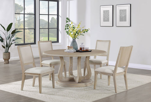 Adina - 5 Piece Round Dining Table Set - Barley / Distressed Light Brown