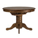 Reinvent your style with the Carolina Crossing five-piece pedestal table set. Crafted of rubberwood solids. The pedestal table has a 15” butterfly leaf allowing the user to expand the round top into an oval top and is anchored by a turned pedestal base flowing into splayed feet. The chairs feature saddle shaped seating for added comfort and turned splayed legs with nylon chair glides to protect your flooring. Carolina Crossing offers affordable solids in a perfect scale for smaller dining areas.
