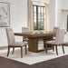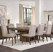 Sophisticated and elegant but with a casual accent, the Garland Dining Collection is built to shine in any environment.A distressed finish blends with a sophisticated modern profile in a relaxed style-blending design marked by clean, crisp lines. The Garland Table comes with an 18-inch leaf that extends the table to 96 inches to seat up to eight comfortably and marries beautifully with the fully upholstered Parsons Chairs in a tightly tailored canvas cover with a brass accent, mixing casual and formal designs in a relaxed but elegant design. Pair these beauties with the Sideboard with a tasteful hardware treatment for an ultra-clean presentation that also offers plenty of hidden storage. Seat all of your family and friends in a comfortable but elegant dining presentation with the Garland Dining Collection