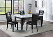Elegant dining at a value can be yours with the Sterling Dining Set. The table's faux-marble top contrasts beautifully with the rich cordovan finish of the legs for dining at it's finest. The spacious 66" top allows you to dine in comfort. The coordinating side chairs feature tufted backs in an easy-care faux-leather.