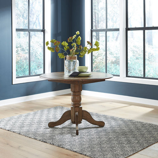 Liberty FurnitureGather around the Lakeshore single pedestal table. Crafted of rubberwood solids with pine veneers, this piece features a two-toned navy and wood fi...