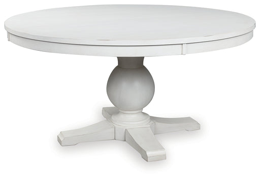Signature Design by Ashley®Make a farmhouse-inspired statement with this dining table. Its clean two-tone finish, pedestal base and planked effect bring the charm of the coun...