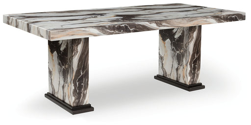 Signature Design by Ashley®Consumer's ChoiceThis dining table reflects your highly contemporary point of view. Its faux marble tabletop and base are a feast for the senses—white contrasts aga...