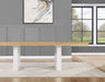 Large scale and generous proportions define the silhouette of this instant Modern Farmhouse dining table classic. A naturally finished top highlights the character and grain of the oak veneers and complements the substantial but refined white double pedestal base. This 72-inch long table fits in most dining room but scales at an instant to 96 and 108-inches to seat up to 10 guests easily.