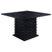 Bring bold, modern style to your dining space with this counter-height dining table. Its striking square silhouette is enhanced by a sculptural wave-textured pedestal base, offering a dynamic, architectural aesthetic. Crafted from rubberwood, engineered wood, and oak veneer, it features a rich black finish that exudes sophistication. The spacious tabletop comfortably accommodates guests, making it ideal for casual gatherings or elegant meals in a contemporary setting.