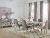 Create an opulent air of sophistication with this elegant dining table. a long and spacious tabletop seats six guests rather comfortably. slide up a chair beneath its opaque white tempered glass surface for formal dinners and casual gatherings. supporting the tabletop is a trestle-inspired stainless steel base with ring-shaped end supports, all of which boast a gleaming chrome finish that reflects the dining room's color palette like a chic mirror. available within this same collection are a delicate light pink and grey slipper style dining chairs, accenting the exquisite nature of the table even further.