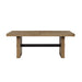 The Aubrey 78-96 inch dining table with an 18-inch leaf emanates modern lodge vibes, boasting clean lines and craftsman influences. Its sleek waxed finish exudes a contemporary allure, accentuated by finished stretchers with exposed tenons, allowing for effortless mix-and-match styling with other pieces.