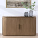 Experience the Colvin Server’s modern allure with gently rounded, reeded front doors, emanating elegance. This piece blends old Hollywood glamour with generous storage and European concealed hinges for a seamless aesthetic. Two adjustable shelves within offer practicality, while satin brass hardware accents add a touch of sophistication. Revel in its romantic charm while effortlessly concealing dining essentials.