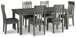 Details D589-35: Made with hardwood solids, select acacia veneer and engineered wood, Antiqued gray finish, Thick sturdy top, Self-storing butterfly extension leaf, Seats up to 6, Assembly required, D589-01: Made with solid wood, Antiqued gray finish, Upholstered in gray textural polyester fabric, Cushioned foam seat, Contoured comb-back design, Assembly required,