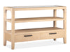 The Somerset dining collection represents the essence of effortless elegance. Its soft curves and rounded angles are easy on the eyes while open shelves and cutouts lend a feeling of lightness and youthfulness. Finished in a soft shade of Butternut that accentuates its knotty white oak veneer patterns and these soothing designs feel modern yet timeless. Bold graphite hardware provides contrast to the relaxed finish and adds another layer of visual interest to the case pieces. Coordinating chairs are upholstered in an Omari Natural fabric for ultimate decorating flexibility. For family dinners or entertaining friends and Somerset dining options offer the ultimate combination of beauty and function.