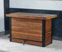 Sturdy and rustic, the Tyler 38-inch Bar Table offers a slice of nostalgia in a Bar setting. Casual and relaxed, Tyler has a great look with a warm Chestnut finish over a timber-beam base with powder-coated black accent and footrail. The back of the Bar offers everything needed for serving one or a crowd: a hanging stemware holder for storing glasses and a fixed shelf for ample room to store all the bottles needed. Organized and stylish, Tyler gives you both.