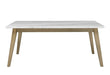 Discover the minimalism, functionality and beauty of mid-century modern design with the Vida 72-inch marble top dining table. Crafted with utmost care and precision, the Vida Dining Table presents a stunning marble top with a knife-edge finish that adds an extra layer of refinement to its design. The tabletop sits elegantly on burnished blonde solid hardwood legs that have been meticulously carved into canted legs in a versatile design that seats up to six people. The warm tones of the acacia legs and the coolness of the marble top create an understated and sophisticated look that's bound to impress.