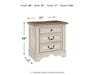 Elevating the art of traditional cottage styling, this nightstand is your dream bedroom retreat realized. Its antiqued two-tone aesthetic blends a chipped white with a distressed wood finished top for added charm. Framed drawer fronts and decorative corbels add refinement, while bail pulls in a dark bronze-tone finish lend a classic touch. Subtly placed USB/electrical outlets meld vintage inspiration with modern convenience.