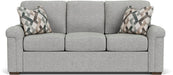 The transitional design of the Blanchard Sofa masters the mix of real style and real life. Ample, well-constructed cushions inspire rest and relaxation. Seat cushions are reversible to preserve cushion shape and extend fabric life. A bold square, tapered block leg offers a modern touch. And two throw pillows add a touch of color.