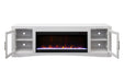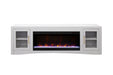 Look no further than the Heritage 82 inch Fireplace TV Stand for a modern and stylish upgrade for your living room. Crafted from Oak Solids and Veneers, this Entertainment Center with Fireplace is available in two finishes and features Gold Hardware and a subtle arch base. This Fireplace Console will accommodate TVs up to 90 inches and includes two framed glass doors to provide visibility for interior shelving and media consoles. Cable management openings on the back panel will keep all wires organized and out of sight. The 42” Electric Fireplace Insert includes a remote control and multiple settings allow for heat up to 400 square feet. Four (included) screws make securing the fireplace insert to the console quick and simple.