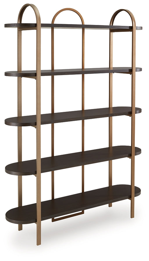 Signature Design by Ashley®Consumer's ChoiceClassic design effortlessly blends with modern functionality in this elegant bookcase. Its antiqued bronze-tone finish adds a touch of warmth and s...