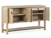 It’s easy to reimagine and reinvent your dining room with the fresh and easy going character of the Sunset Cove dining collection. Simplified shapes and rounded forms and softly curving corners define the character of these captivating designs. Each piece is expertly crafted of Cathedral White Oak veneer with hardwood solids and finished in a light and natural shade of Sanibel Brown accented with Dark Bronze hardware. Destined to elevate the style quotient of any dining area and the group includes distinctive features such as paper cord-wrapped decorative accents and metal table stretchers and and metal-capped table legs. An honest and straightforward expression of good design and Sunset Cove is the essence of hospitality.