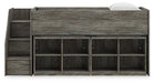 Cool, casual style is for all ages. With this twin loft bed with bookcase storage, they get the function they need plus the refined design you love. Approachably neutral in a rustic warm gray, it’s adaptable enough to pair with an assortment of existing colors and room decor. Faux metal detailing with nailhead accents lends an industrial edge. And with its space-saving lofted design and included bookcases, this bed doubles as a storage solution for toys, books and everything in between.