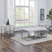 Bring a touch of elegance and sophistication to your living room with Aston, a 3-piece living room table set that exudes romantic charm. The modern sled base and asymmetrical design with an offset smoky glass shelf make for a striking centerpiece, while the sparkling chrome base and lustrous white marble create an aura of timeless beauty. Perfect for intimate conversations and candlelit dinners, Aston will make your heart skip a beat with its clean lines and contemporary appeal. Set the mood for a truly special evening with the Aston living room table set.