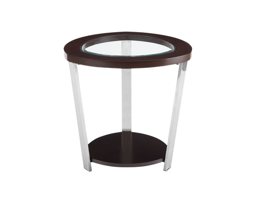 Steve Silver FurnitureA sturdy chrome frame highlights a countertop that looks like wood yet resists moisture and scratches in the Lucia Chairside End Table by Steve Sil...