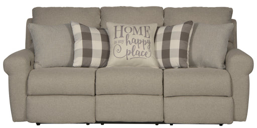 CatnapperThe WESTPORT lay flat reclining sofa features a Farmhouse Casual style with its Greek Key arm treatment, soft body fabric, and 5 included accent pi...