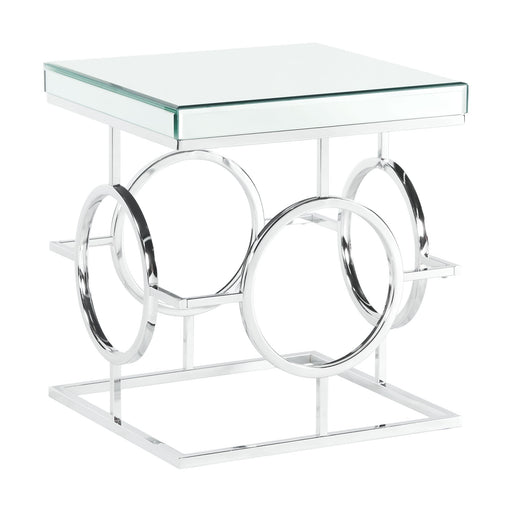 CoasterElevationsThis chic and contemporary end table captivates with its sculptural, artistic design. Crafted with mirrored surfaces and engineered wood, it exudes...
