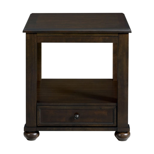 Signature Design by Ashley®Serving up transitional style at its best, this striking end table looks equally at home in traditional and modern settings. Its classic brown fini...