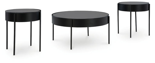 Signature Design by Ashley®Round up a sleek, modern look with this table set. The rounded black glass tops offer the perfect perch for drinks, snacks or decor displays. Shape...