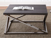 The Aegean Cocktail Table is an example of brilliant contemporary geometrical design and impeccable craftsmanship. Streamlined in design, the square top focuses on architectural excellence while being highly functional. This stylized table has nickel plating that is polished to a gorgeous black nickel finish. The modern top on this table is crafted from Silver shield 3D PVC laminate that ensure its beauty and durability. This geometrical styled table adds a very refined urban feel to your living room.