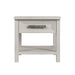 Define your living space with the transitional style of the Avalanche End Table. Constructed of quality solid and engineered wood, the tabletop’s broad surface is complemented by an equally spacious open shelf, effortlessly extending your storage and display options. Designed for practical use, a functional drawer adorned with a broad, textured handle features protective felt lining and skillful French and English dovetailing, while a conveniently integrated USB port lends itself to practical utility. For a sleek and stylish addition to your home, the Avalanche End Table in Antique White delivers in quality and design.
