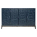 Eclectic Living is an accent category that offers a combination of many different individual elements of styles, themes, pooled from many sources. The mixture creates excitement and wow factor to any decor. No need to match when you can mix and match. Mix traditional pieces with urban for a more casual appeal. Mix contemporary pieces with traditional for a statement piece. Braxton features four eye-catching fret work design doors in an Azure Blue finish. This accent cabinet will make a bold statement to any room.