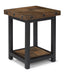 Instantly add inviting character to living spaces with the Carpenter chairside table. Sized perfectly for smaller spaces, this table still has plenty of room to hold your favorite book and cup of coffee. An open lower shelf offers an additional area for storage or to display décor. Inspired by the look of vintage workbenches, this chairside table features distressed acacia wood planks for a reclaimed look, hand-worked metal frames and exposed bolt heads.