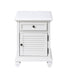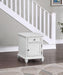 Modern farmhouse design in a compact design that fits comfortably beside a chair or as a companion piece to a Sofa and Loveseat. This Charlestown table offers looks and function with a pop-up power strip that offers convenient recharging of devices with a built-in USB recharging station. All of this is a crisp white finish with louvered doors and contemporary bun foot in a transitional package that will fit in any room.