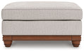 Fresh yet classic. That’s the beauty of this ottoman. Dressy and also soft to the touch, its organic neutral-toned upholstery is sure to bring a transitional farmhouse aesthetic to your living space. A full wraparound base and decorative legs complete the timeless look. It's the perfect place to kick up your feet at the end of a long day.
