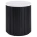 Inspired by Art Deco and Empire styling, the Colvin 18" Round End Table brings modern elegance to your living area. Finished in sleek over Asian hardwoods, it radiates warmth and beauty, perfect for those who appreciate sophistication. This versatile piece is ideal as a side table companion or at the end of a sofa, effortlessly blending style and functionality. Featuring a reeded base and a spacious round top, the Colvin End Table provides ample room for living room essentials, combining timeless design with practical utility.