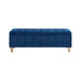 The Crosby Tufted Storage Ottoman is the missing piece for your home! This storage ottoman features a tufted lid, adding extra flair to this already stunning piece. Detailed square stitching and piping along the ottoman elevates it to the next level. Easily store away blankets in the available storage space. The velvet fabric complements the natural finish of the wooden feet beautifully.