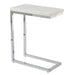 Modern and elegant, the Echo "C" Table adds surface area anywhere you need it. Great for use with a sectional or as an End Table, this table has a white marble top and a chrome-finished metal base that adds sparkle and shape to any room. Use in the middle of a large Sectional to give added work or drink surface.